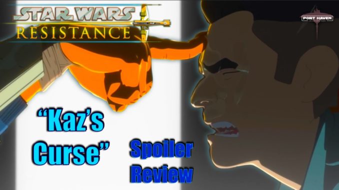 We are back with Season 2 of Star Wars Resistance! In “Kaz’s Curse” Kaz has a streak of beginner’s luck at a game of chance. A pirate who lost his money at Kaz’s hands sticks a pirate’s curse on our hero’s head. Now stricken by bad luck Kaz must find a way to rid himself of the curse and help the endangered Colossus.